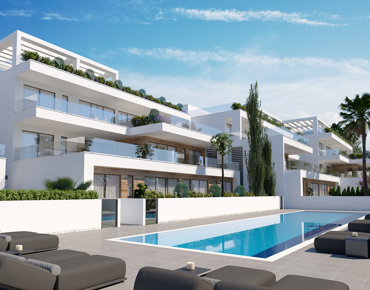 Bayview terraces consist of a residential development of 75 apartments spreaded in 11 buildings, featuring 2 and 3 bedrooms in a gated community. All apartments have large terraces and ensuite bedrooms. Bayview terraces offers amenities such as:
